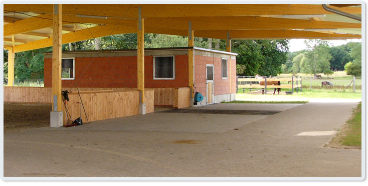 Stationäre Unterbringung Foto: Isolationsboxen Wir verfügen über: Intensivboxen Isolationsboxen insgesamt 27 Pferdeboxen klinikeigene Paddocks und eine eigene Bewegungshalle